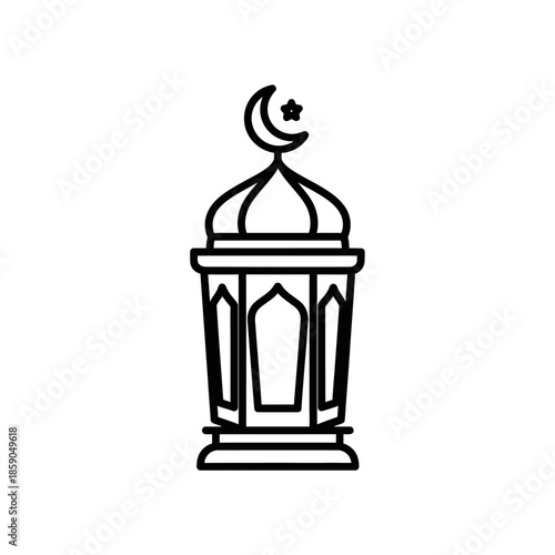 Islamic Lantern Icon with Crescent Moon and Star - Ramadan Decoration