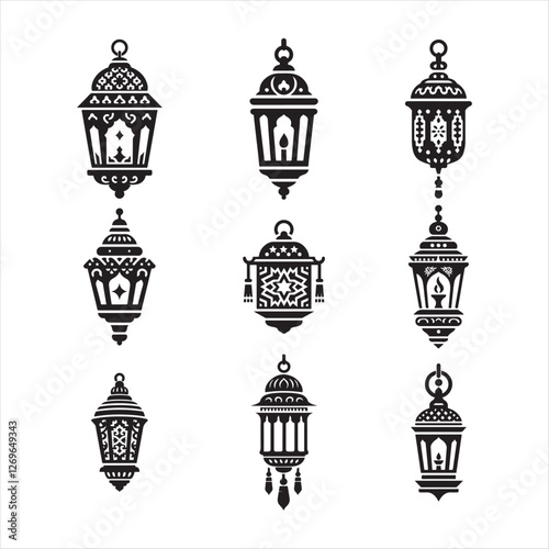 Islamic lanterns and lamp difference icon silhouette vector illustration