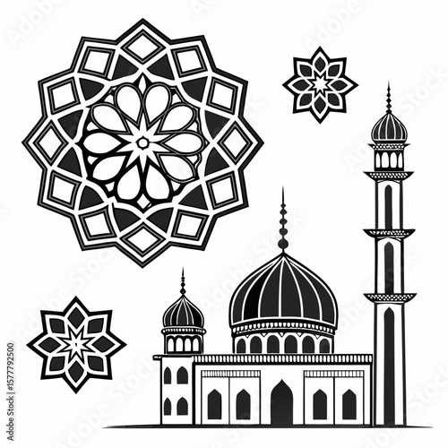 Islamic mosque and star patterns minaret dome