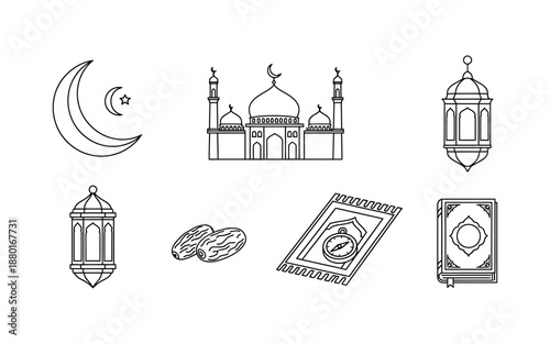 Islamic Ramadan Line Art Icons Vector Set for Religious Worship Design