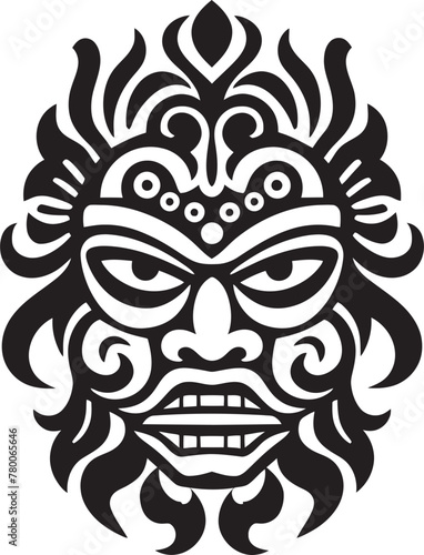 Island Artistry: Bali Mask Icon Graphics Ethereal Essence: Traditional Bali Mask Emblem Design