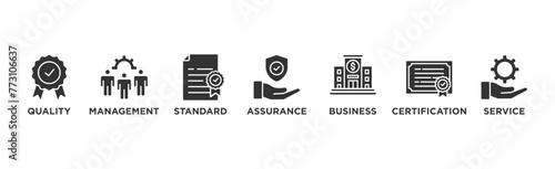 ISO 9001 banner web icon vector illustration concept with icon of quality, management, standard, assurance, business, certification and service