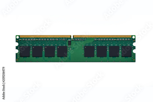Isolate Computer RAM (Random Access Memory) on white background. DDR SDRAM - double data rate synchronous dynamic random-access memory. Technology.