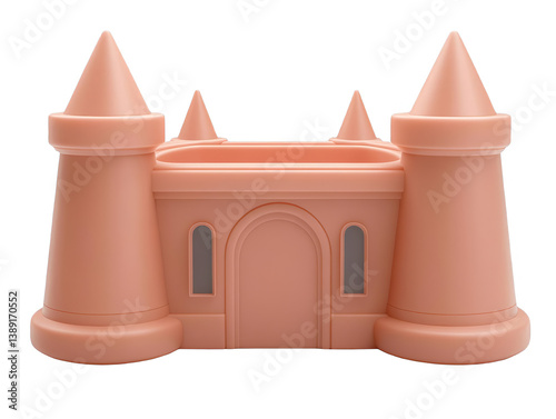 Isolated 3D Pink Toy Castle Illustration with Detailed Realistic Design