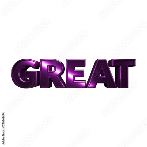 Isolated 3D Purple Metallic GREAT Text: A Shiny Chromatic Typography Graphic for Excellence, Achievement, High Quality, and Positive Endorsements.