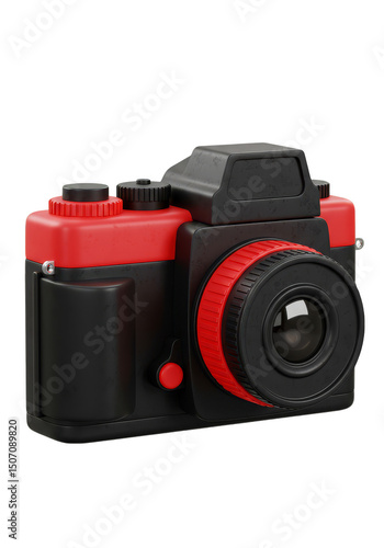 Isolated 3D Render of Red and Black Camera Lens Retro Photography Object