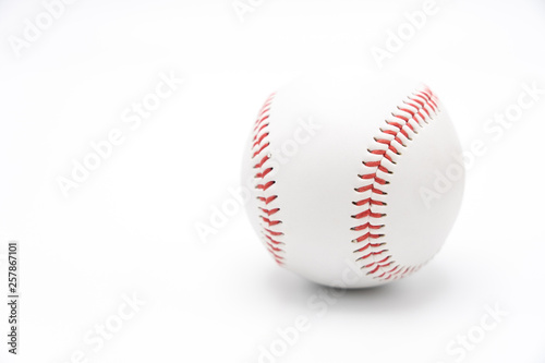 Isolated baseball on a white background and red stitching baseball. White baseball with red thread.Baseball is a national sport of Japan. It is popular.