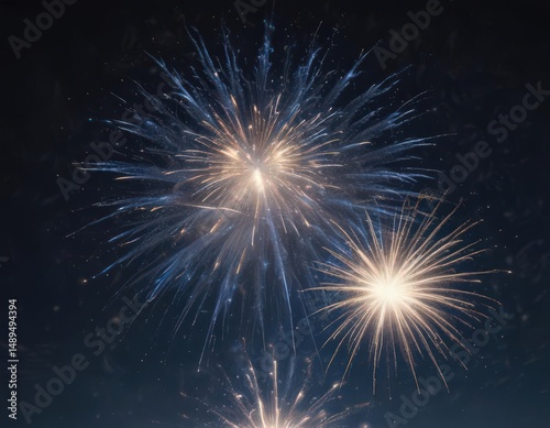 Isolated blue fireworks burst against a starry night sky , dark, background, blue