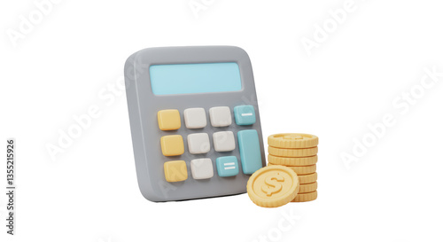 Isolated Calculator with Stack of Coins, Representing Financial Calculation and Accounting