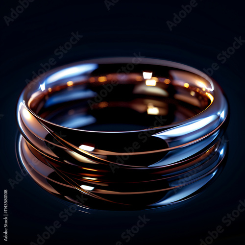 Isolated Close-Up View of a Shiny Ring on a Plain Background, Highlighting the Luxurious and Elegant Design with Reflective Surfaces and Smooth Curves