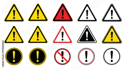 Isolated Collection of Danger Hazard Attention Warning Signs and Symbols with Exclamation Marks