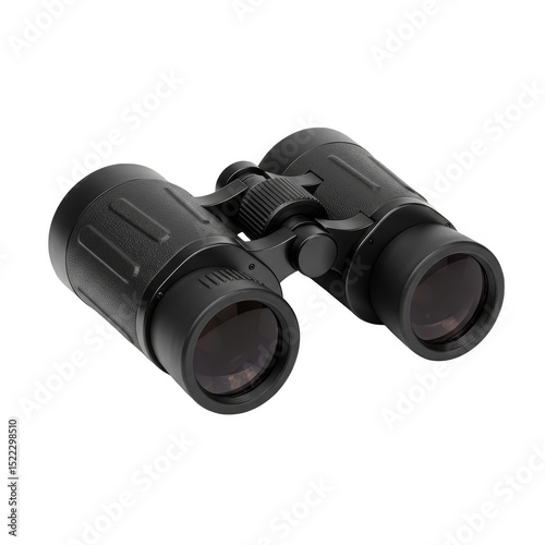 Isolated Detailed Black Binoculars Zoom Lens For Portable Travel Outdoor