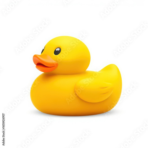 Isolated image of a bright yellow rubber duck with an orange beak on white