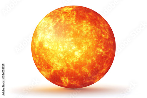 Isolated image of sun planet representing heat and energy generation with scientific pattern on surface and transparent background featuring yellow and orange tones