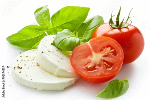 Isolated mozzarella cheese tomato basil on white background