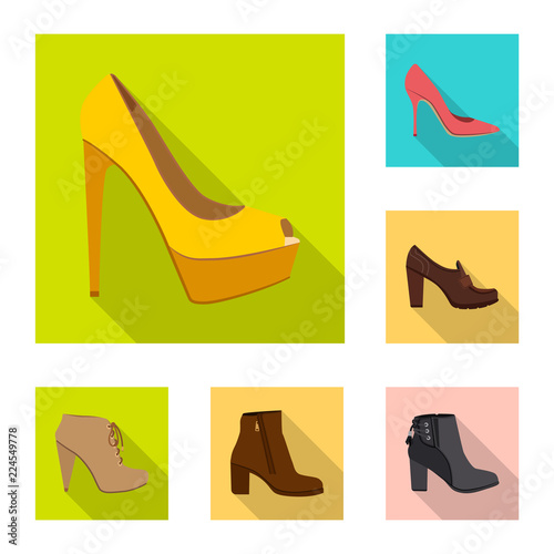 Isolated object of footwear and woman symbol. Set of footwear and foot stock vector illustration.