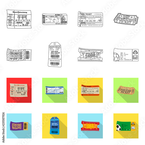 Isolated object of ticket and admission icon. Set of ticket and event vector icon for stock.