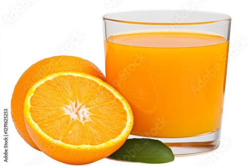Isolated orange juice in a glass with a straw and oranges on a white background. This is a PNG file isolated on a transparent or blank background, a high-resolution photo