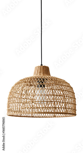 Isolated Photo of Rattan Lamp with Warm Light on Black Background