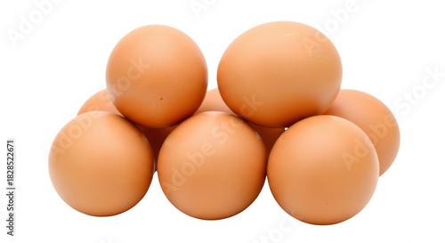 Isolated pile of brown eggs ready for cooking or baking, nutritious food ingredient