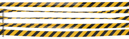 Isolated police tape with yellow and black stripes. Waving on the wind warning ribbon set.
