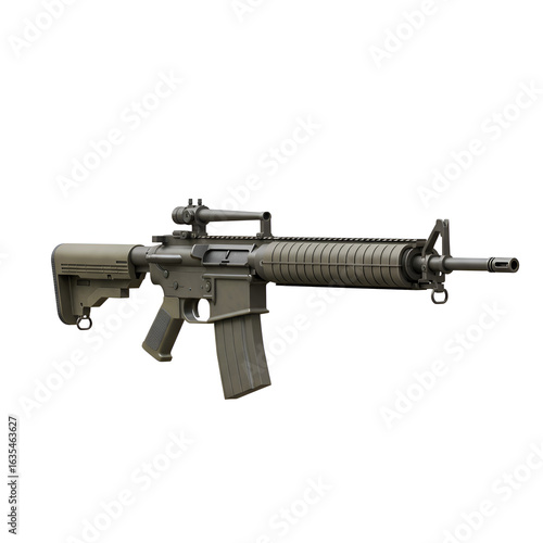 Isolated Realistic Image of an Assault Rifle on a White Background