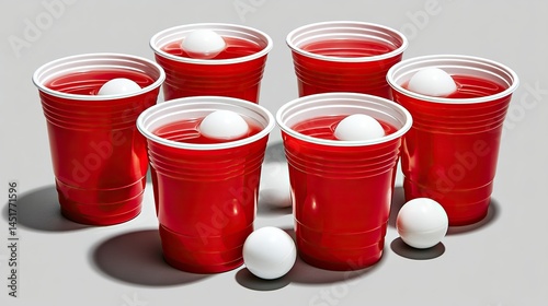 Isolated red and white plastic cups are colorful disposable containers for beverages