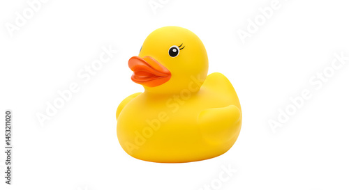Isolated rubber ducky photo for bath time fun and child play, cute and classic bath toy image for kids on transparent background