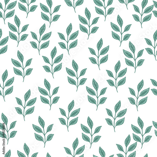 Isolated seamless pattern with blue random little ornament. White background. Seasonal nature artwork.