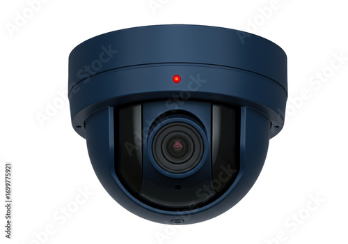 Isolated Security Camera in Dark Blue – Surveillance and Protection with Dome Housing Style