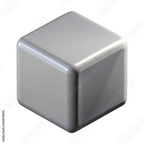 Isolated silver cube render for graphic design and d modeling with rounded edges on black background
