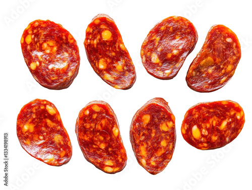 Isolated Slices of Spicy Spanish Chorizo with Marbled Texture