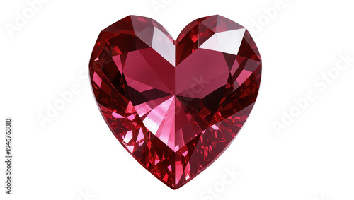 Isolated sparkling heart-shaped red ruby gemstone with brilliant facets, a precious jewel
