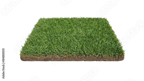 Isolated Square Patch of Green Grass with Soil Cross-Section