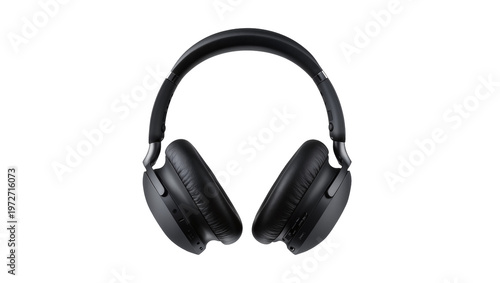 Isolated stylish black over-ear wireless headphones, a contemporary audio listening device
