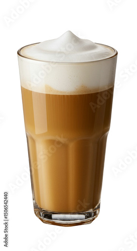 Isolated Tall Glass Of Latte Coffee With Frothy Foam Against Transparent Background