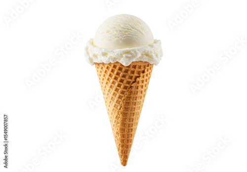 Isolated Vanilla Ice Cream Cone with Waffle Texture