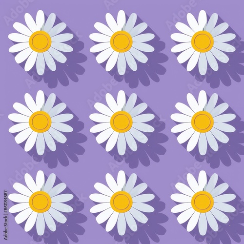 Isolated white chamomile icon. Daisy Camomile set. Growing concept. Simple flat design. Nature based style. Love card symbol. Violet background. Vector.