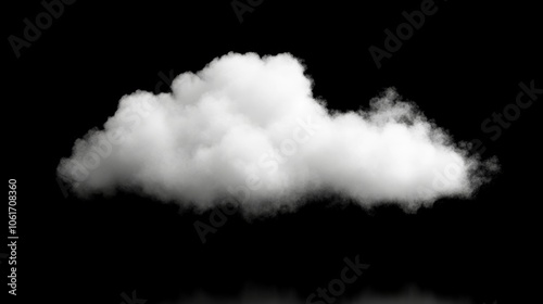 Isolated White Fluffy Cloud on Black Background Weather Sky Nature Design Element