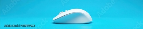 Isolated white mouse against a bright blue background, modern, electronics, pure