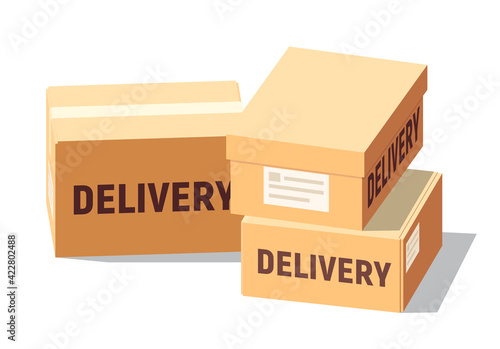 Isometric cardboard boxes set for delivery and storage. Isolated carton crates collection with various angles and point of view.