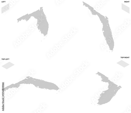 Isometric Dot Map of Florida with Transparent Background