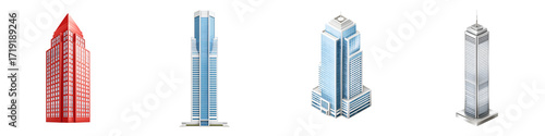 Isometric Skyscraper Collection: Modern City Buildings on White
