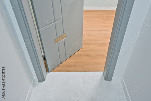 It is common in interior design that the border between the living room and the room is made of floor finishing material