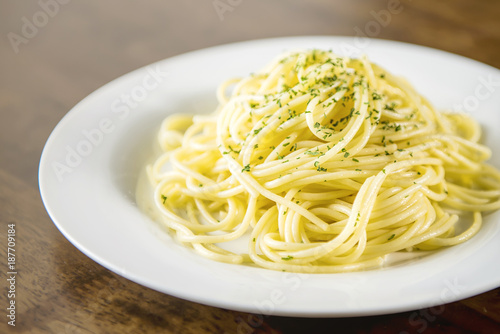 Italian spaghetti on white plate