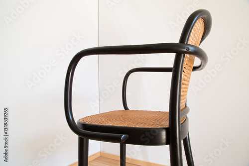 Italienischer Bugholz Armlehnstuhl, vintage aus den 50er Jahren, Rattangeflecht an Rückenlehne und Sitz