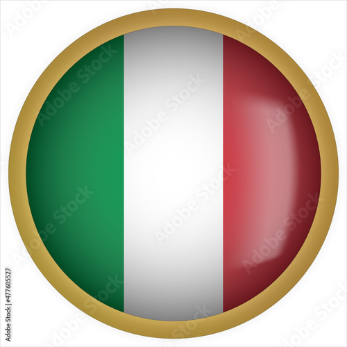 Italy 3D rounded Flag Button Icon with Gold Frame