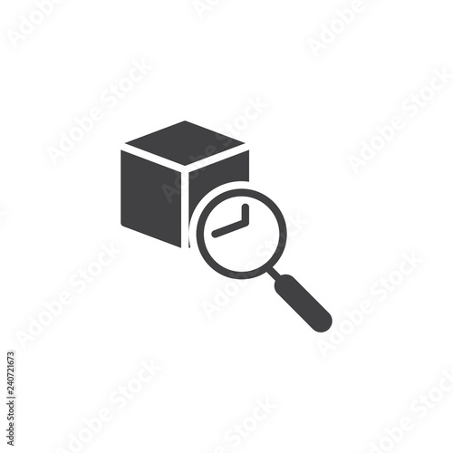Item search vector icon. filled flat sign for mobile concept and web design. Magnifier glass and cube shape simple solid icon. Symbol, logo illustration. Pixel perfect vector graphics