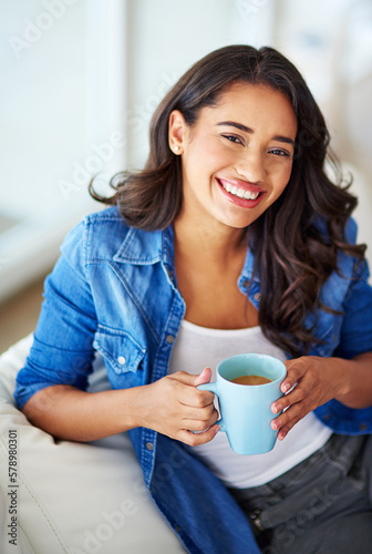 Its the only way to start the day. a young woman drinking coffee while relaxing at home.