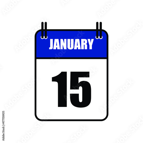 January 15 Calendar Icon Vector Illustration . Date , Day Of Mouth